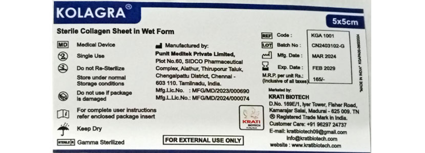 Sterile Type-1 and Type III Collagen Sheet